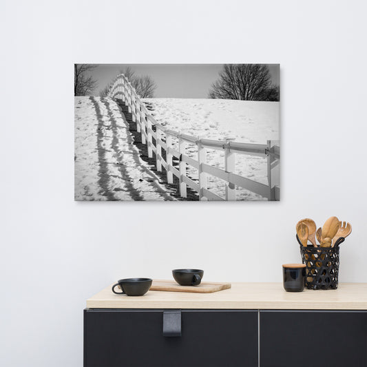 Endless Fences in Black & White Rural Landscape Fine Art Canvas Wall Art Prints