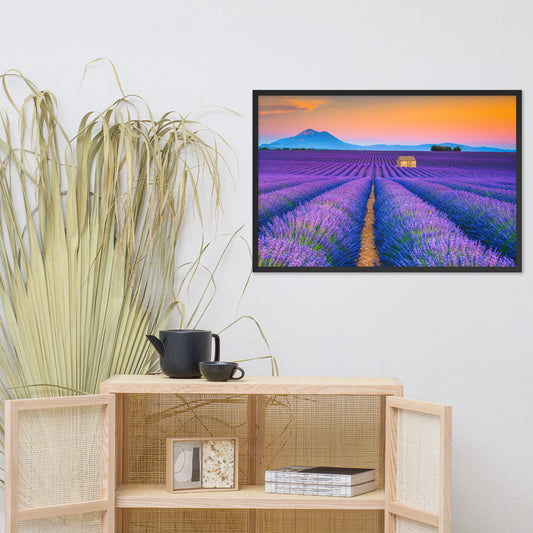 Blooming Lavender Field and Sunset Floral Landscape Framed Photo Wall Art Prints