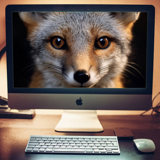 Foxfire Gaze Gray Fox Photorealistic Digital Artwork Wallpaper for Computer