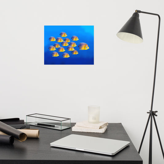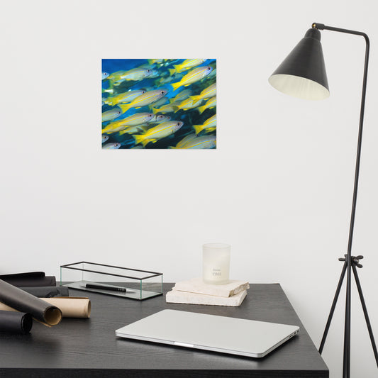 School of Yellow Tropical Fish in Blue Ocean Water Animal Wildlife Photograph Loose Wall Art Print