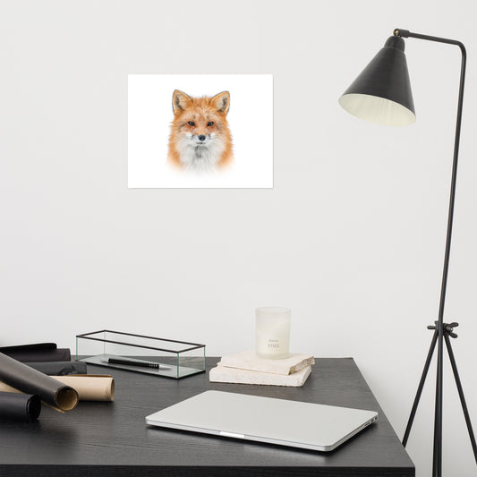 Young Red Fox Face on White Minimal Animal Wildlife Nature Photograph Loose Wall Art Print