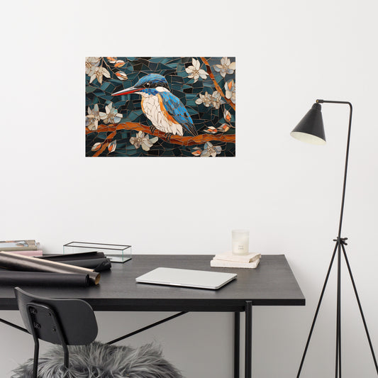 Kingfisher Serenade Mosaic Illustration - Digital Artwork Loose Art Print