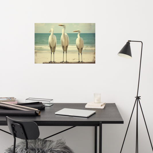 Nature's Serenity Egret Retro Subdued Photorealism - Digital Artwork Loose Art Print