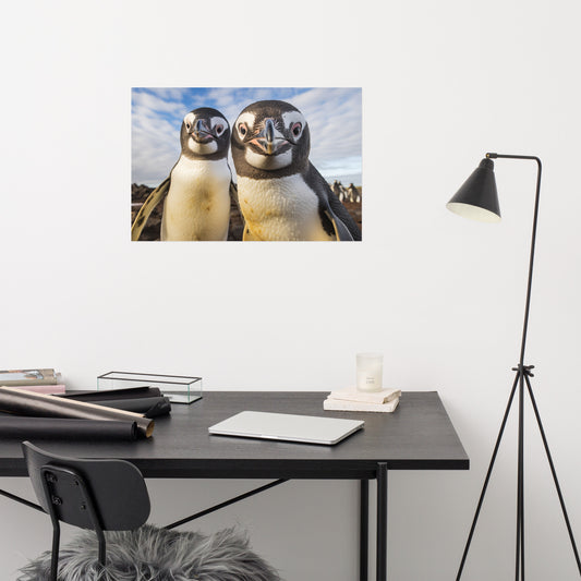 Penguin Pair Photorealism - Digital Artwork Loose Art Print