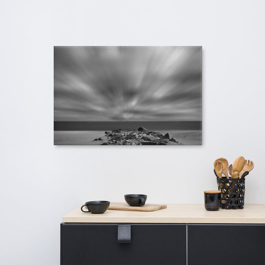 Windy Beach Black and White Coastal Landscape Photograph Canvas Wall Art Prints