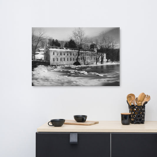 Winter at Powder Mill Black and White Rural Landscape Canvas Wall Art Prints