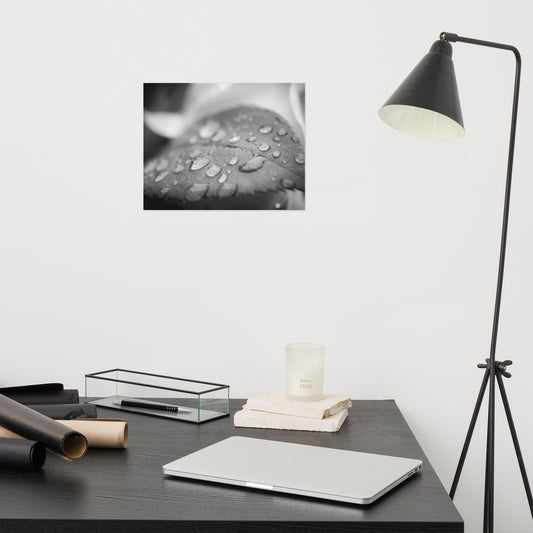 Droplets on Petals Black and White Floral Nature Photo Loose Unframed Wall Art Prints