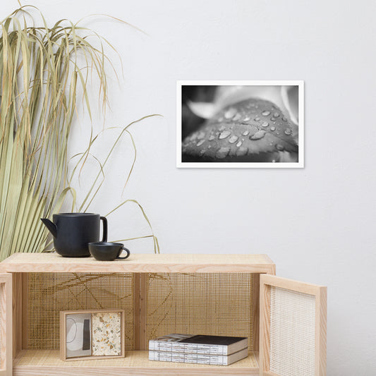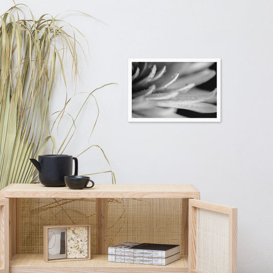Droplets on Petals Black and White Floral Nature Photo Framed Wall Art Print