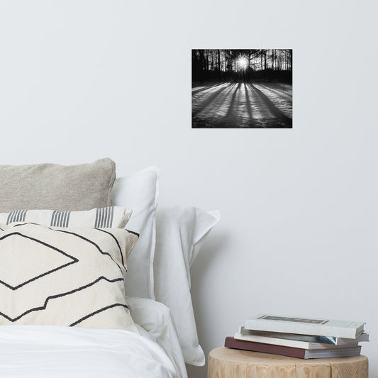 Winter Shadows Black and White Rustic Farmhouse Style Landscape Photo Loose Wall Art Prints