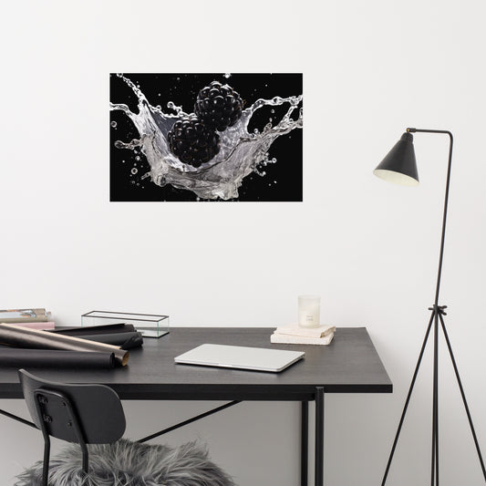 The Juicy Burst Blackberry in Water Photorealism - Digital Artwork Loose Art Print