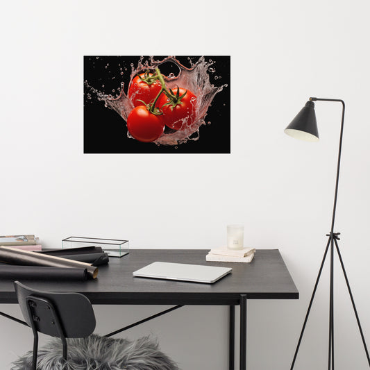 Tomato Splash - Tomatoes in Water Photorealism - Digital Artwork Loose Art Print