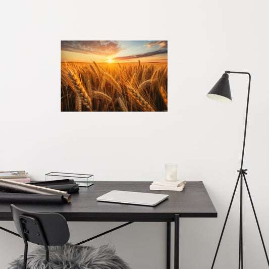 Golden Hour Harvest Minimal Botanical Rustic Subdued Wheat Crops Photorealistic - Digital Artwork Loose Art Print
