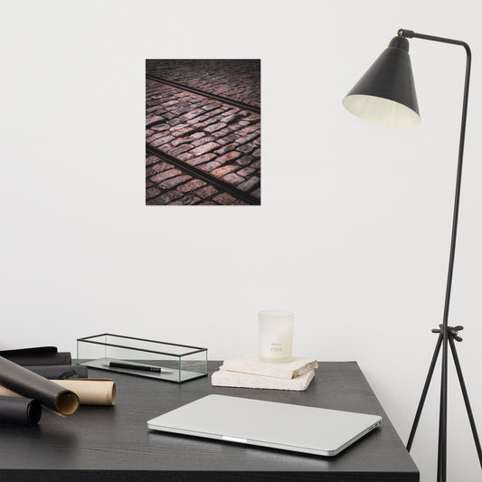 Train Tracks Cobblestone River Street Savannah Ga Rustic Farmhouse Style Industrial Photograph Loose Wall Art Print