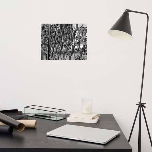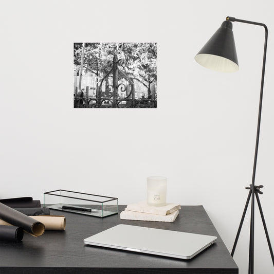 Black and White Old Wrought Iron Fence Savannah Ga Loose Wall Art Print