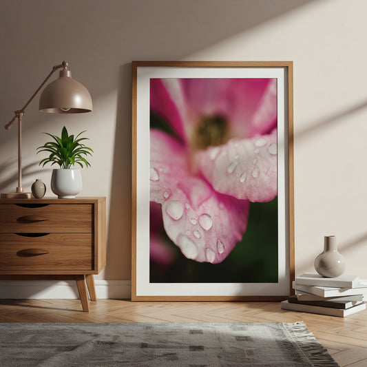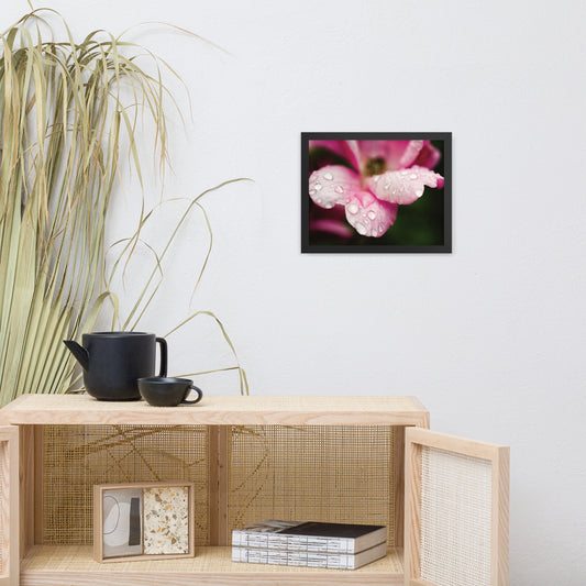 Raindrops on Wild Rose Color Floral Nature Photo Framed Wall Art Print