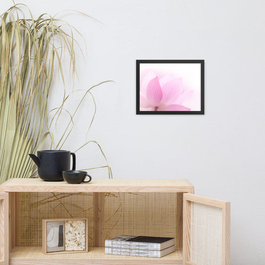 Peaceful Close-up Pink Lotus Petal Floral Framed Nature Photo Paper Poster