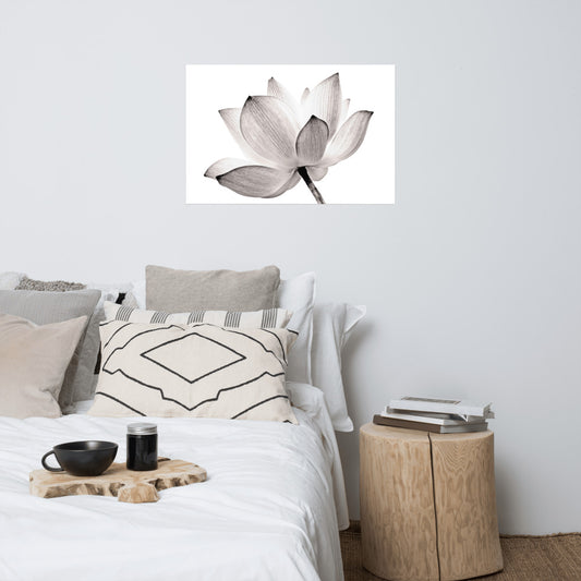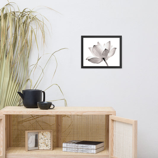 Lotus Flower on Black and White Background Floral Nature Framed Photo Paper Poster