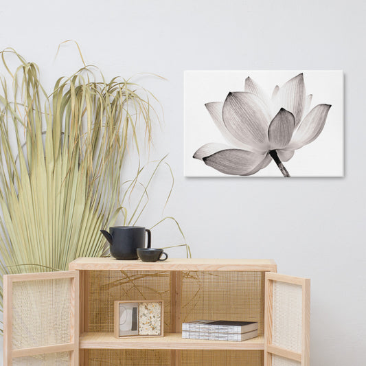 Lotus Flower Black and White Floral Botanical Nature Photo Canvas Wall Decorating Print