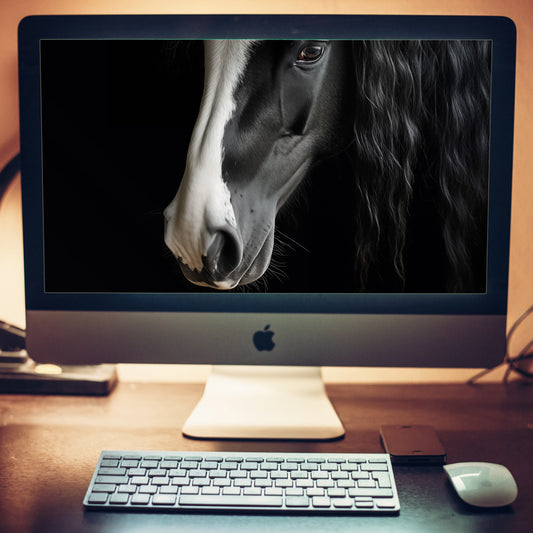 Equestrian Art Prints: Ebony and Ivory Photorealism - Digital Artwork Canvas
