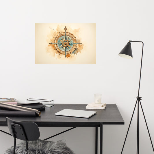 Lost and Found Compass Watercolor Painting - Digital Artwork Loose Art Print
