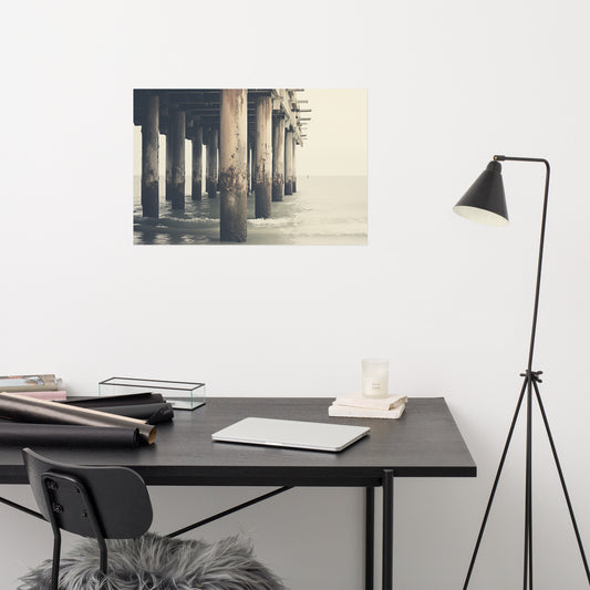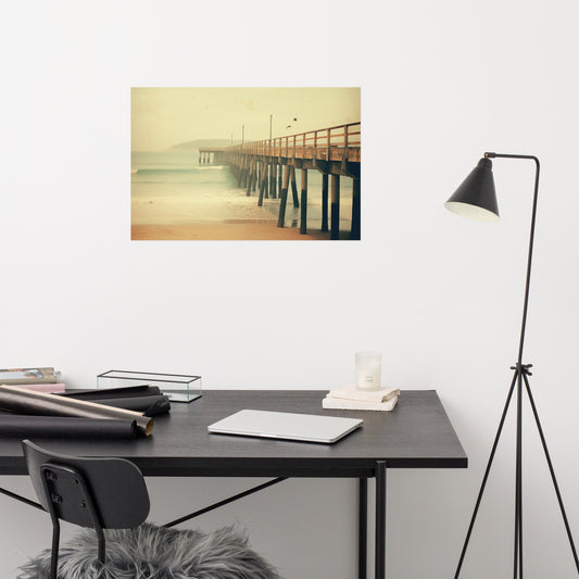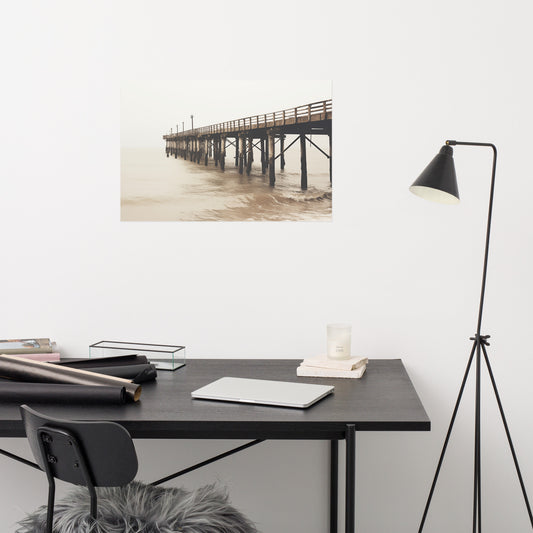 The Pier in the Fog Subdued Retro Coastal Photorealism - Digital Artwork Loose Art Print