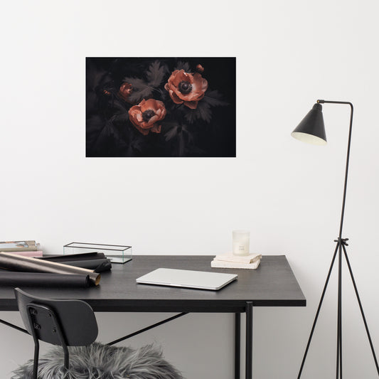 Midnight Majesty Dark Floral Photorealism - Digital Artwork Loose Art Print