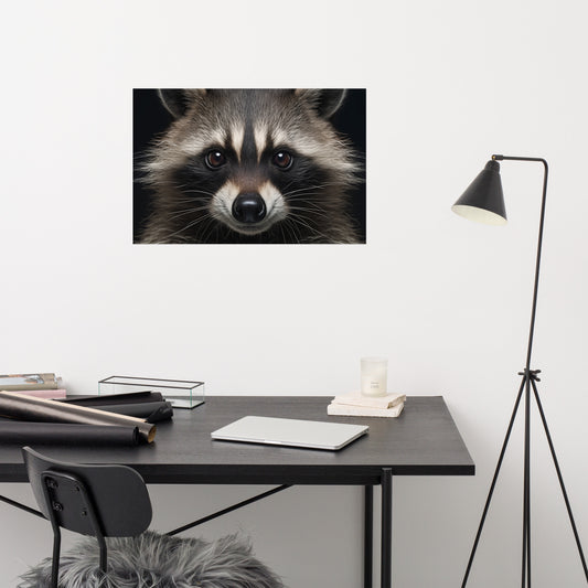 Midnight Mischief Raccoon Portrait Photorealism - Digital Artwork Loose Art Print