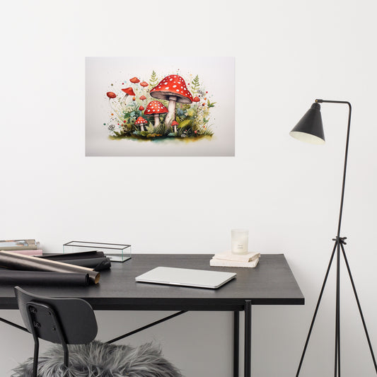 Mushroom Meadow Magic Watercolor Painting - Digital Artwork Loose Art Print