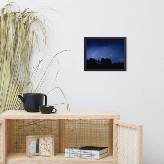 Lightning Over The Valley Urban Landscape Photo Framed Wall Art Print