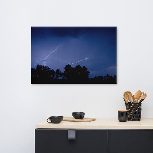 Lightning Over The Valley Night Nature Traditional Canvas Wall Art Print