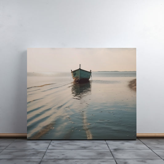 Awaiting Departure Abandoned Weathered Boat Beach Subdued Photorealistic Digital Artwork Canvas Wall Art Print