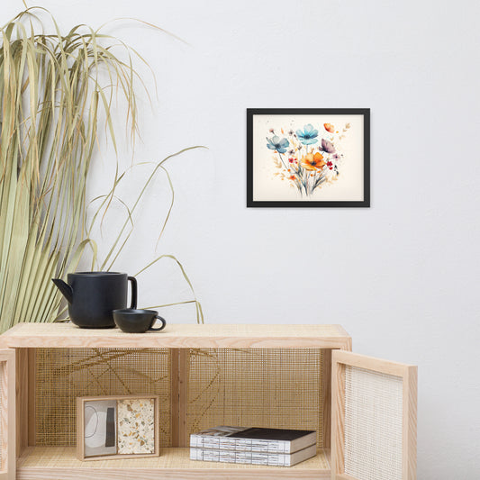 Floral Still Life Colorful Bouquet Watercolor Painting Digital Artwork Framed Wall Art Print