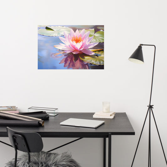 Water Lily's Embrace Oil Painting - Digital Artwork Loose Art Print