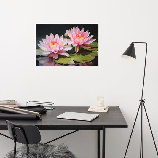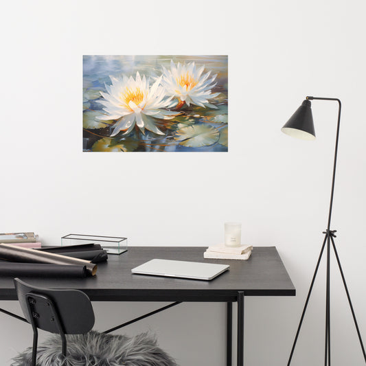 Water Lily Duet Oil Painting - Digital Artwork Loose Art Print