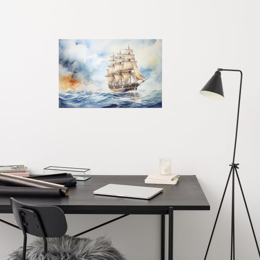 Nautical Abstract Art: Embarking on Adventure Watercolor Nautical Scene - Digital Artwork Loose Art Print