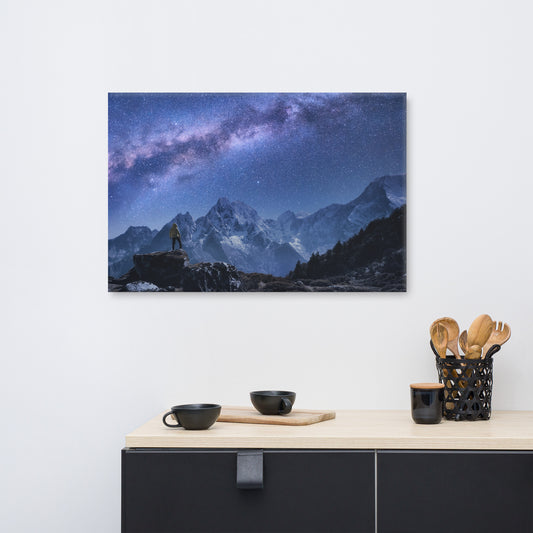 Stone Mountains and Milky Way Night Landscape Photo Canvas Wall Art Print