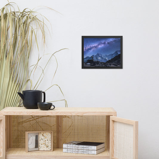 Stone Mountains and Milky Way Night Landscape Photo Framed Wall Art Print