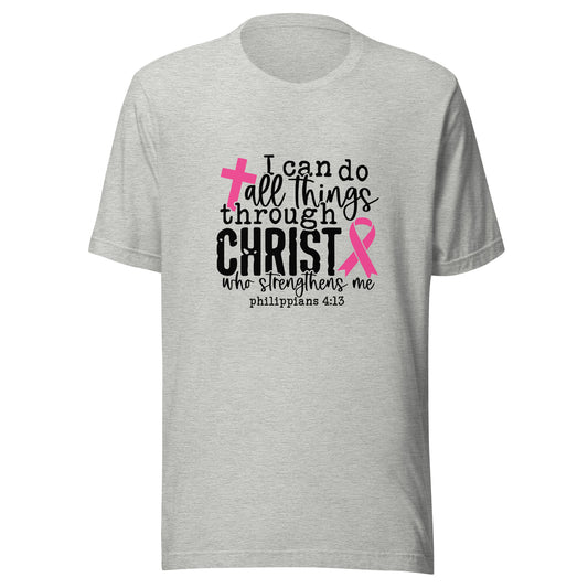 I Can Do All Things Through Christ - Breast Cancer Support - Honor - Survivor - Awareness Pink Ribbon Unisex T-shirt