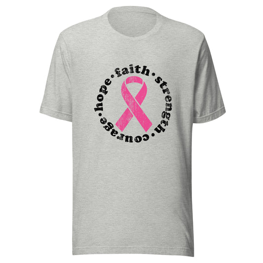 Faith Hope Strength Courage - Breast Cancer Support - Survivor - Awareness Pink Ribbon Unisex T-shirt
