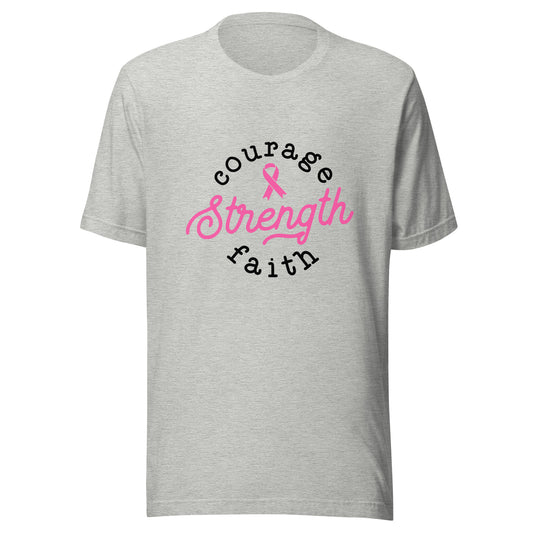 Courage Strength Faith Breast Cancer Support - Survivor - Awareness Pink Ribbon Unisex T-shirt
