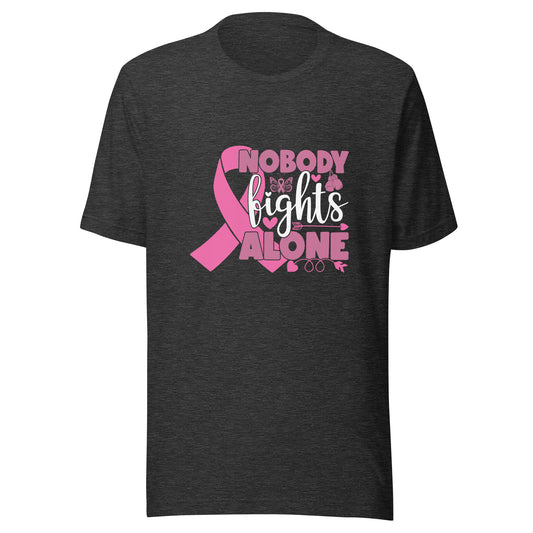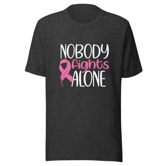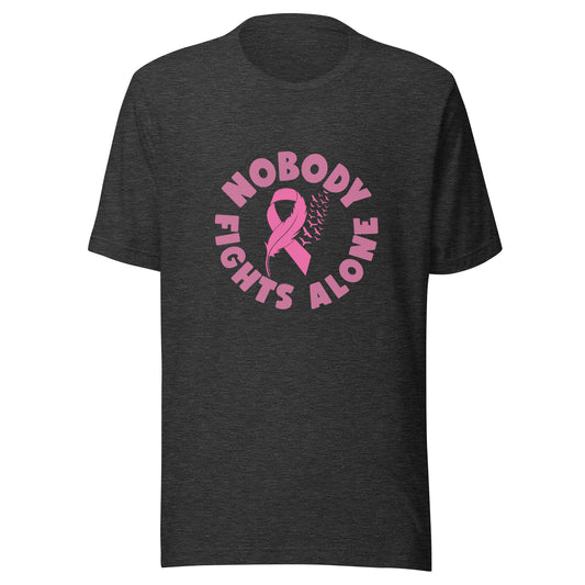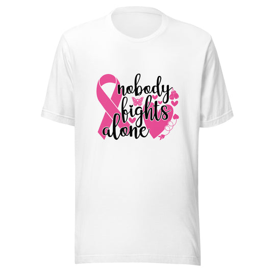 Nobody Fights Alone - Breast Cancer Awareness Pink Cancer Ribbon Unisex T-shirt