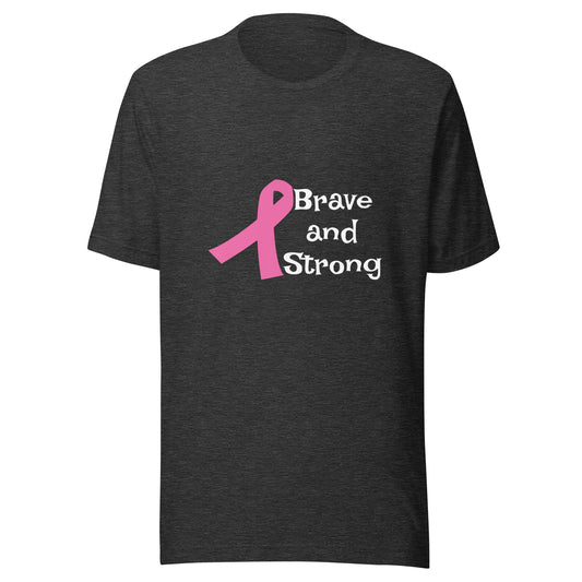 Brave and Strong - Breast Cancer Survivor - Warrior Pink Cancer Ribbon Support Unisex T-shirt