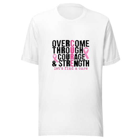 Overcome Through Courage and Strength - Breast Cancer Support - Survivor - Awareness Pink Ribbon Unisex T-shirt