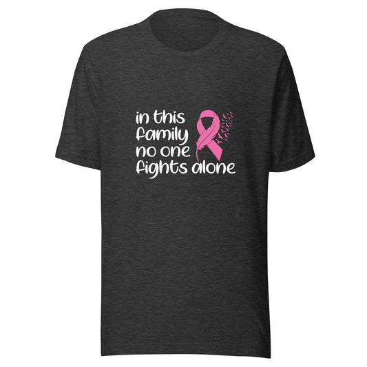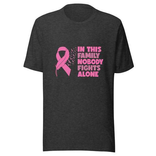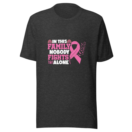 In This Family Nobody Fights Alone Breast Cancer Awareness Pink Cancer Ribbon Support Unisex T-shirt