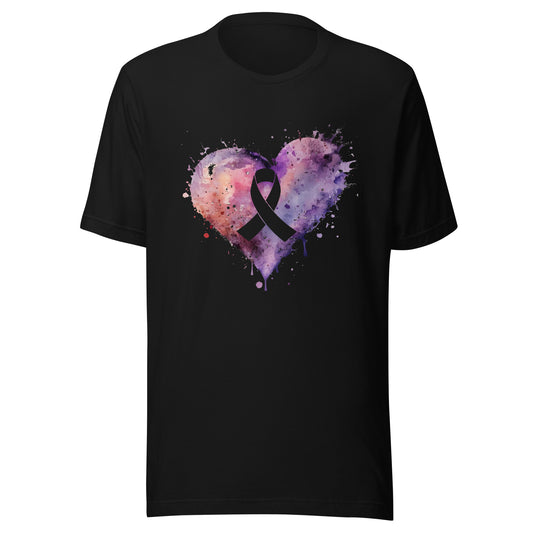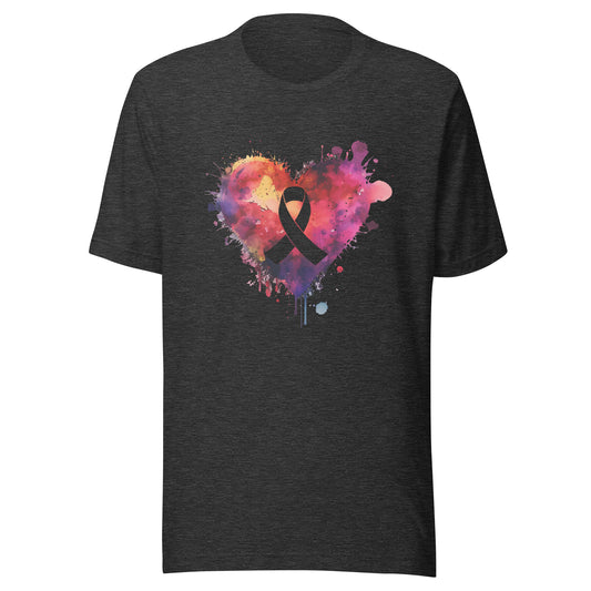 Ribbon in Center of Bold Colorful Heart - Cancer - Digital Watercolor Graphic Design Unisex T-shirt