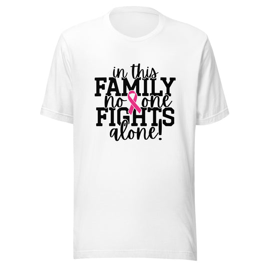 In This Family Nobody Fights Alone Breast Cancer Awareness Pink Cancer Ribbon Support Unisex t-shirt