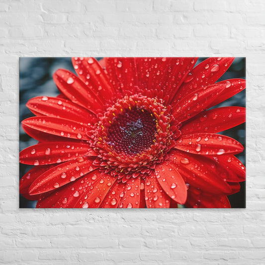 After the Rain Gerbera Daisy Photorealistic Floral Digital Artwork Canvas Wall Art Print