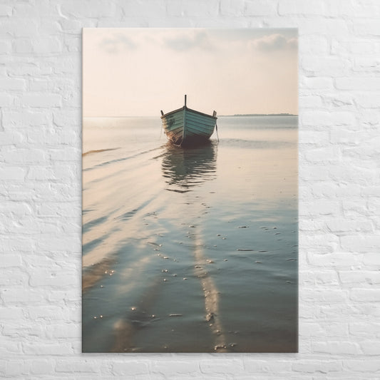 Awaiting Departure Abandoned Weathered Boat Beach Subdued Photorealistic Digital Artwork Canvas Wall Art Print