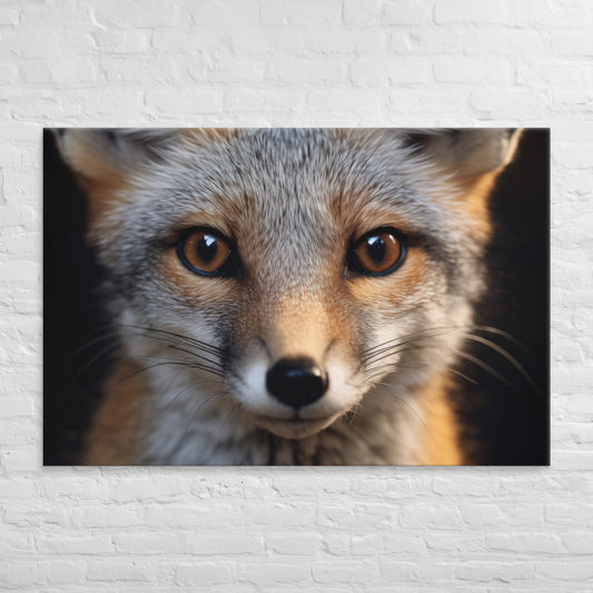 Foxfire Gaze Gray Fox Photorealistic Digital Artwork Canvas Wall Art Print