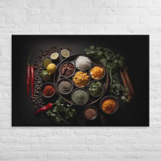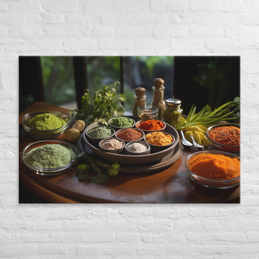 Herbs and Spices Wall Art: "A Culinary Canvas" Photorealistic Digital Artwork Canvas Wall Art Print
